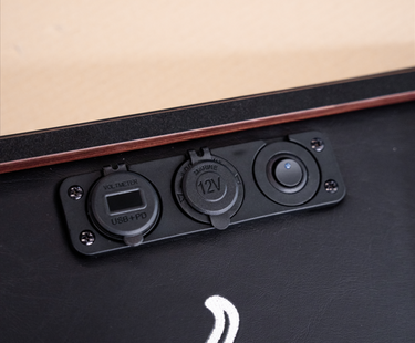 Die integrierten Beleuchtungen und Steckerleisten werden über einen 12V-Anschluss mit Strom versorgt. In der Regel können sie direkt an eine vorhandene Steckdose oder Bordelektrik angeschlossen werden. Wir empfehlen, den Anschluss durch eine fachkundige Person vornehmen zu lassen.