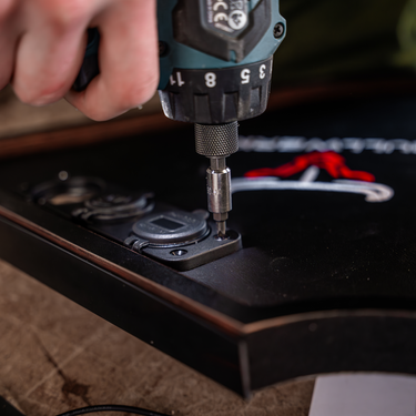 Je nach Modell verwenden wir ein passendes Halterungssystem, das du mitbestellen kannst. Damit sitzt dein Tisch sicher und fest.